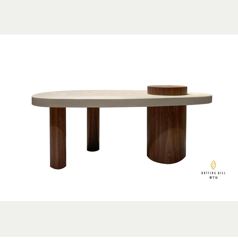 Its unique asymmetrical support structure combines solid walnut cylindrical legs of varying heights, delivering stable load-bearing capacity while adding a layered, organic visual hierarchy. Designed for versatility, this coffee table fits seamlessly into high-end residential living rooms, designer showrooms, boutique hotel lobbies and modern office lounges. It complements minimalist, Scandinavian and modern luxury interior styles perfectly, balancing functional practicality with artistic elegance to elevate any space with understated sophistication.