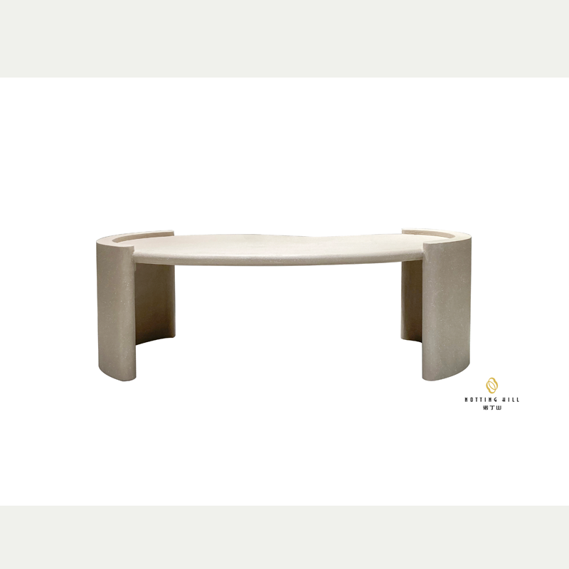 This organic curved coffee table from Notting Hill redefines modern living room aesthetics, blending Wabi-Sabi minimalism with sculptural design to create a functional focal point. Crafted from high-density micro-cement, its fluid, organic tabletop and integrated curved support legs break the boundaries of traditional rectangular forms, delivering a visually light, almost floating effect while ensuring robust load-bearing capacity.