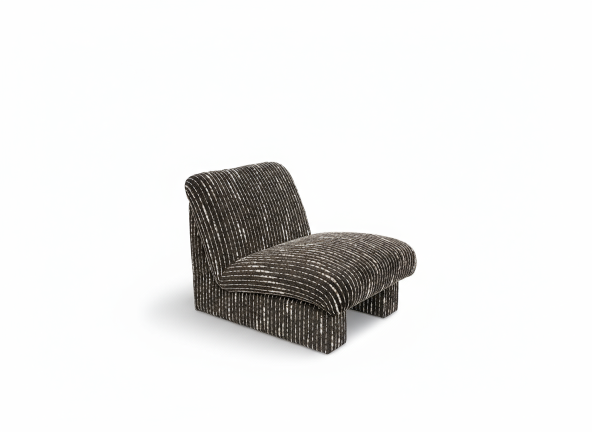 This elegant square armchair from Notting Hill embodies Wabi-Sabi minimalism with soft organic design, crafted for comfort and aesthetic harmony in modern interiors. Upholstered in a textured linen-blend fabric with subtle vertical stripes in a rich charcoal hue, it offers breathability and tactile softness.