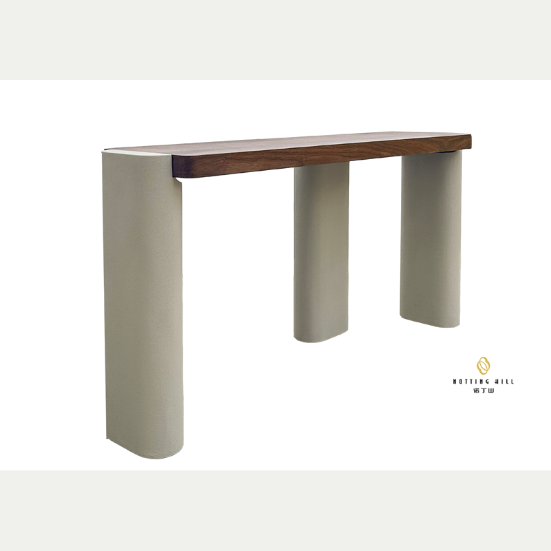 This striking console table from Notting Hill redefines modern entryway aesthetics, blending Wabi-Sabi minimalism with organic design to create a functional sculptural focal point. Crafted with a premium solid walnut wood top, its rich natural grain adds warmth and timeless character, while the supporting structure is formed from high-density micro-cement in a soft neutral beige tone, featuring a delicate granular texture that resists scratches, stains, and daily wear for long-lasting durability.